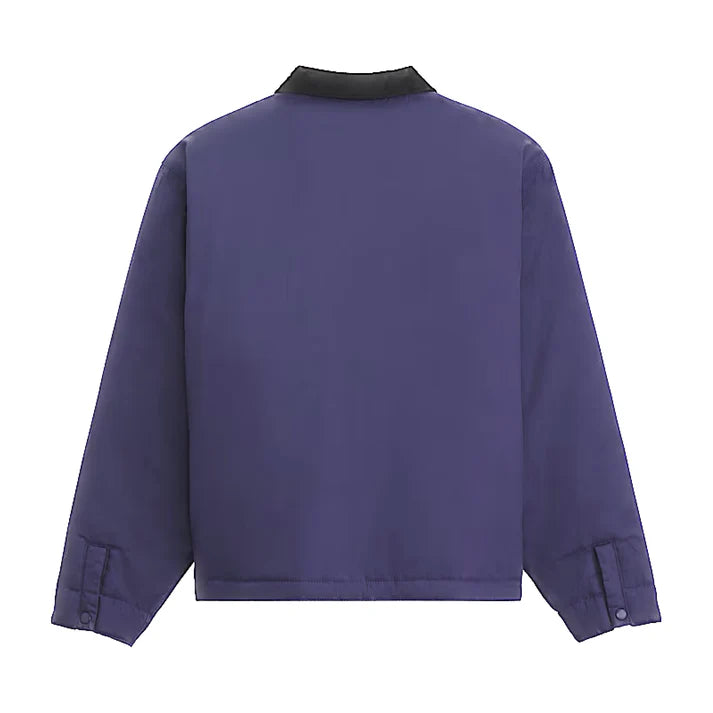 With water repellant coating to protect you fro the elements, the Skate Garage Reversible Jacket is ready to hit the skate park with you. One side features a canvas shell with a corduroy collar and pocket, the other a quilted twill with two pockets so you can swap out and reverse it to suit your needs. With a loose fit for easy movement and optimal layering opportunities, it's finished with Vans skateboarding labeling for added branding details.